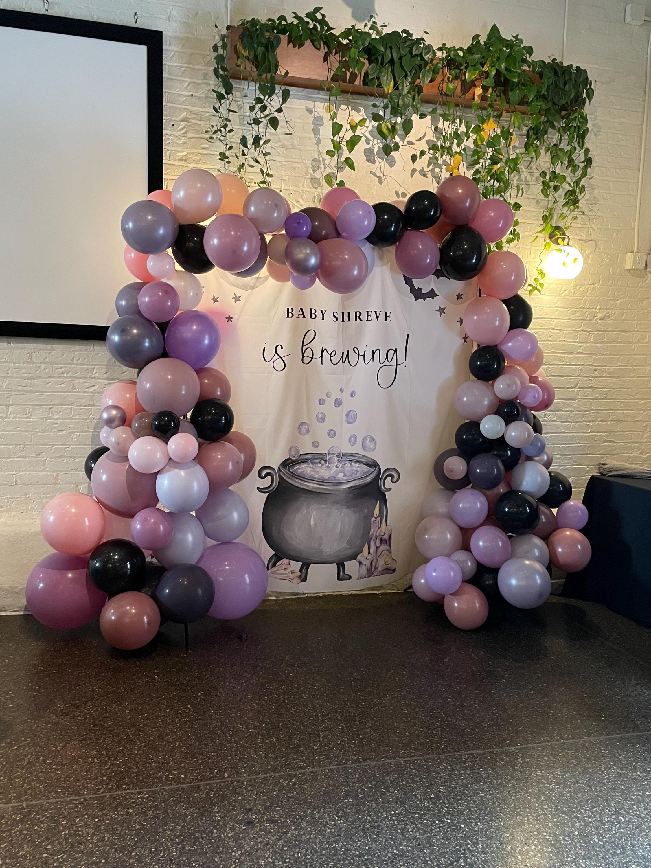 Easy to Assemble: Steam it or use a low heat iron then either use a backdrop stand with clips or attach it directly to the wall with damage-free picture hanging strips. Just a a Halloween balloon garland and some cute lanterns and pumpkins around it, and you've set the perfect "A Baby is Brewing" baby shower scene!